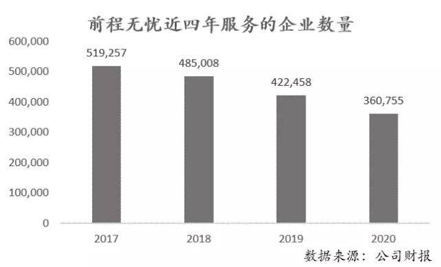 对于在线招聘平台尤为重要的B端企业主用户数方面,前程无忧也在持续下滑,根据其历年财报显示,使用企业网络招聘服务的独立雇主估测人数正逐年减少,从2017年至2020年,用户数分别为51.92万、48.5万、42.24万和36.07万。