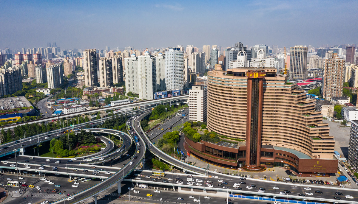 酒店位于繁华的徐家汇商圈西南方向,建筑外观呈“S”型,犹如“上海”的英文首字母,建成36年来一直是当地的地标性建筑。