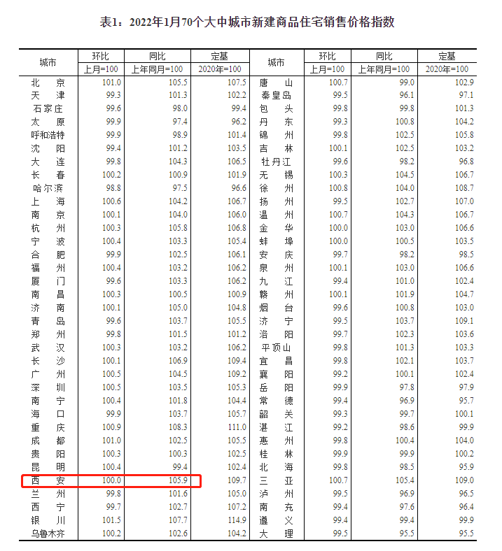 今日,国家统计局发布《2022年1月份70个大中城市商品住宅销售价格变动情况》。