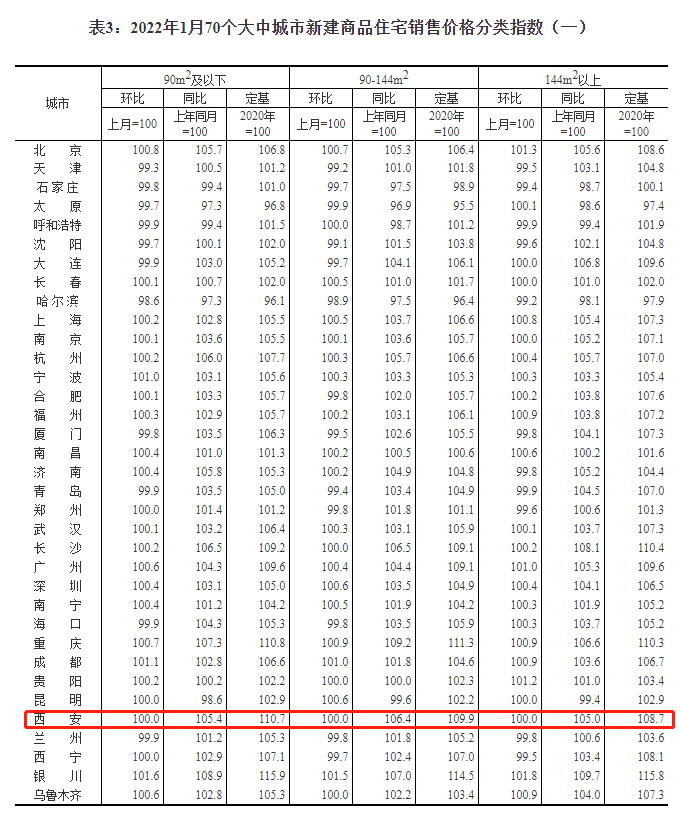 并且,西安90㎡以下商品住宅价格环同比上涨5.4%;90—144㎡产品价格同比上涨6.4%;144㎡以上产品同比上涨5.0%,整体价格涨幅相较于12月份,呈回落之势。