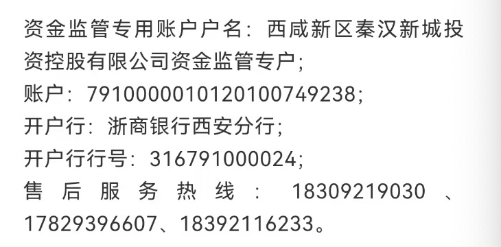 西安天鸿旅游开发有限公司、西安长德旅游开发有限公司、西安凯景旅游开发有限公司、西安恒昌旅游开发有限公司、西安诚铭旅游开发有限公司、西安瑞源旅游开发有限公司名下的所有监管账户资金统一归集到秦汉新城管委会开设的统一监管账户,确保专款专用,保证工程建设。