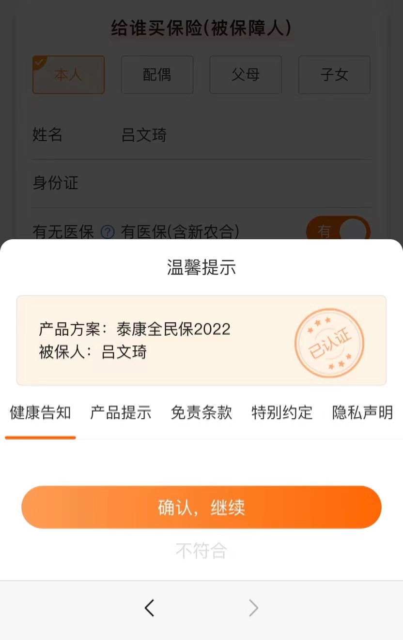 和市场上其他百万医疗险相比,泰康全民保2022保费便宜,但实际保障额度较低,和其他住院100%报销医疗费用的百万医疗险有较大差异。更重要的是,投保流程中没有向消费者强调健康告知的重要性,也没有清晰展示健康告知页面。如果消费者需要理赔,保险公司发现其存在未告知的既往病史,可能会产生拒赔。