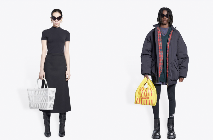 各种创意、搞怪,或许是由Demna主理的Balenciaga最在行的事情之一,聚焦于生活不起眼的物品,以充满趣味的角度翻玩。而出现在Balenciaga Clones秀场上的2款趣味手袋:菜篮“Mag Large Basket Bag”、塑胶袋“Monday Shopper Bag”,它们的设计皆抛开了刻板印象,红得一发不可收拾,塑胶袋“Monday Shopper Bag”更是在上架没多久后就已售空,不过还是有机会等待更多配色的释出。