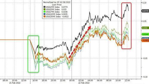 Seaport Global Holdings董事总经理Tom Di Galoma表示,周一发生的任何转向避险资产的操作似乎都已停止,市场认为这种极端情况可能是债市的一个抛售机会。他表示,周二亚洲交易时段刚过半,收益率便上涨,因市场认为乌克兰消息传出后股市超卖。