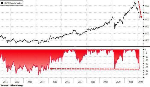 同样出现“神奇反转”的还有俄罗斯股市。尽管俄罗斯基准股指MOEX指数曾经在周二开始之初暴跌10%,但在盘中却神奇般地转涨,最终收涨1.58%。