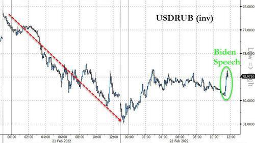 在外汇市场上,俄罗斯卢布兑美元在欧股盘前曾跌破80.90,续创2020年11月以来盘中新低,然而在进入欧美时段后却迅速走出反弹行情,抹平所有跌幅转涨,尤其是在美国总统拜登宣布对俄的新一轮制裁后,卢布反而因为靴子落地而在短线出现跳膝式上升。