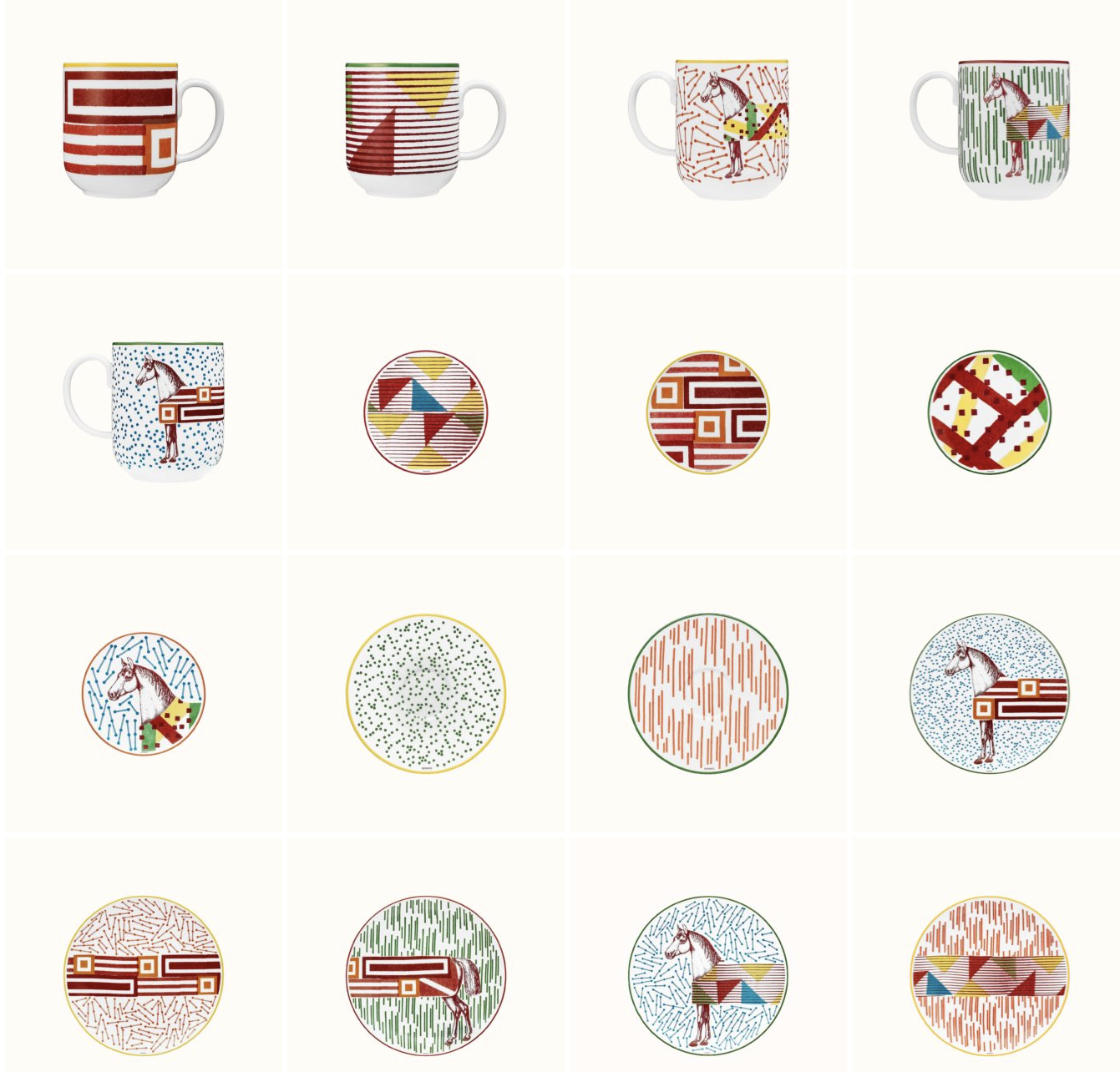 目前,爱马仕“Hippomobile”餐具系列品项囊括茶壶、茶杯、甜点盘等等,价格及款式依国家和地区而异。