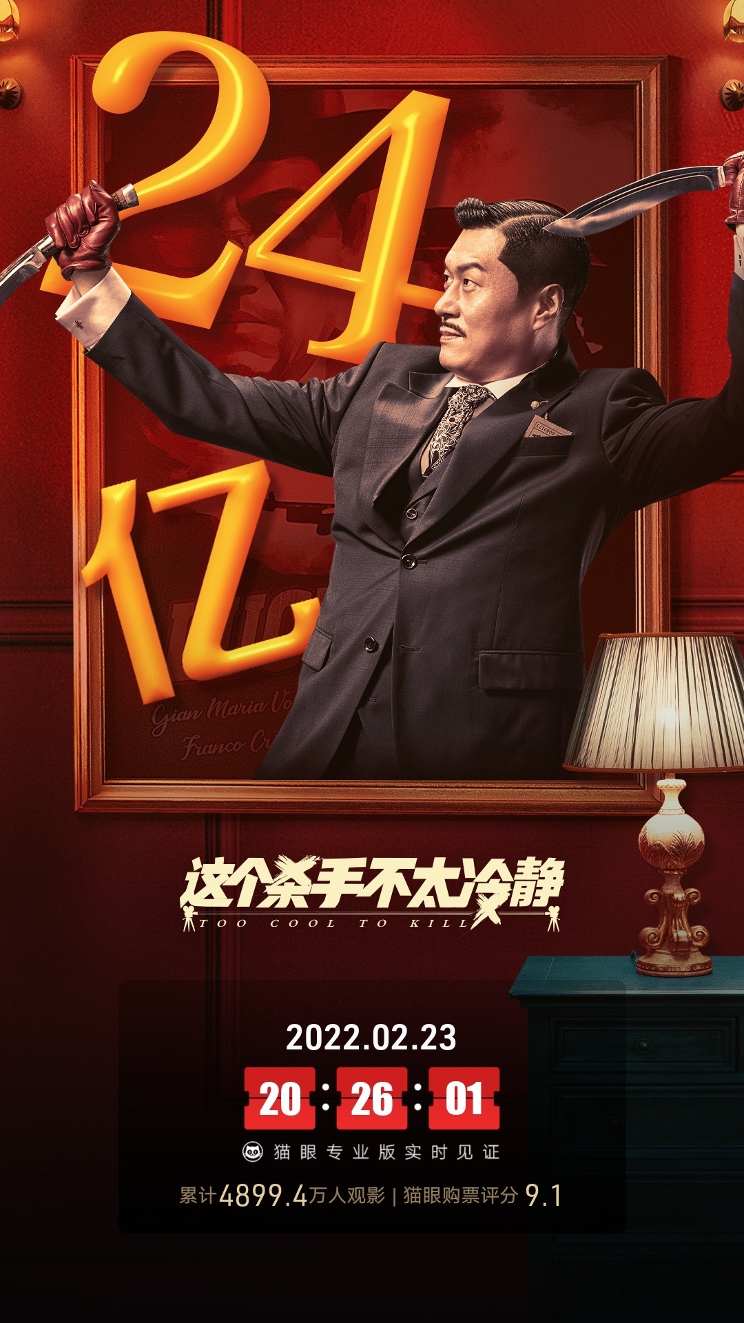 据@猫眼专业版 微博消息,实时见证2月23日20:26:01,电影《这个杀手不太冷静》总票房破24亿。