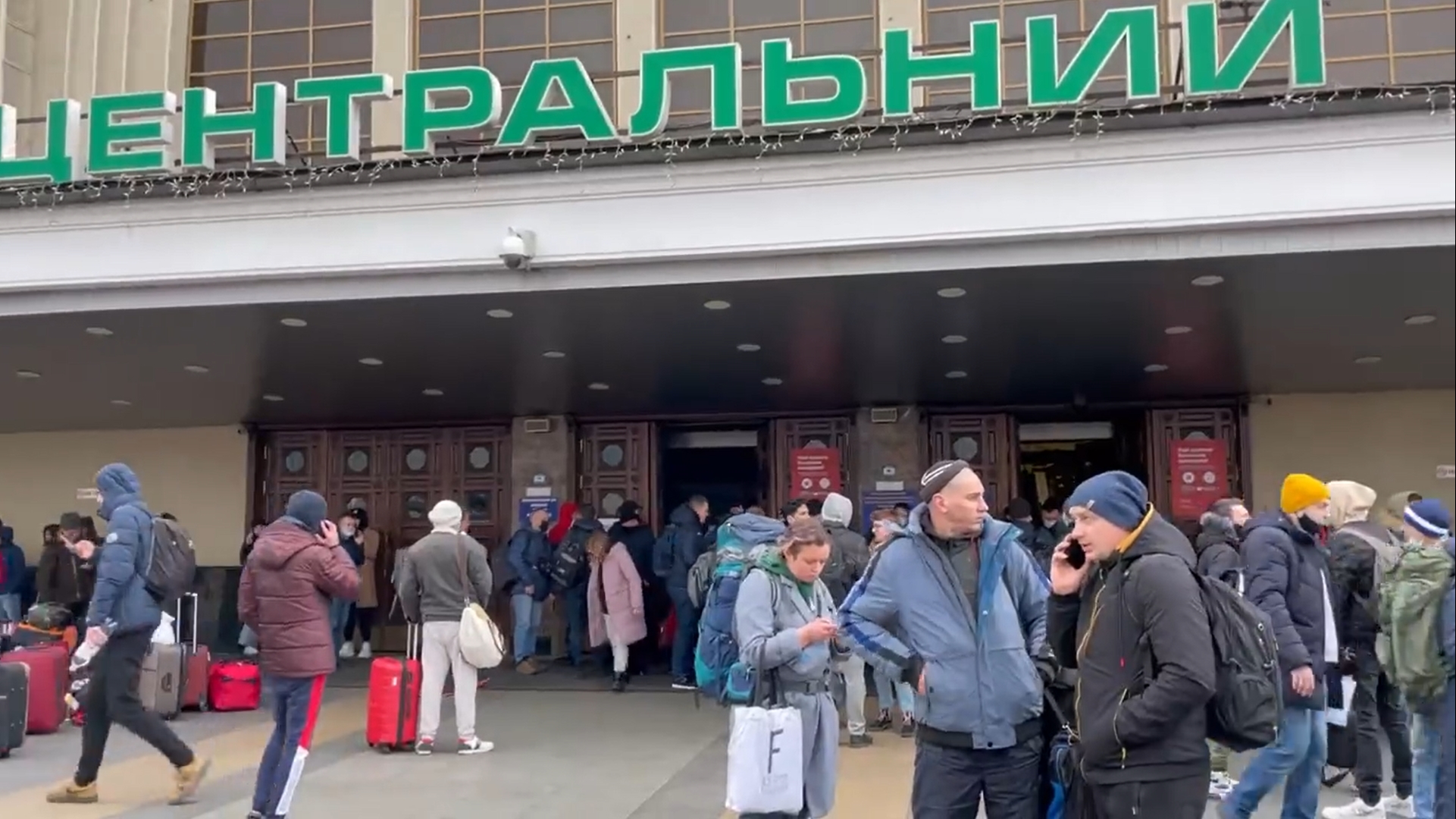 在基辅火车站,也有大批携带行李的民众,希望乘坐火车离开基辅。