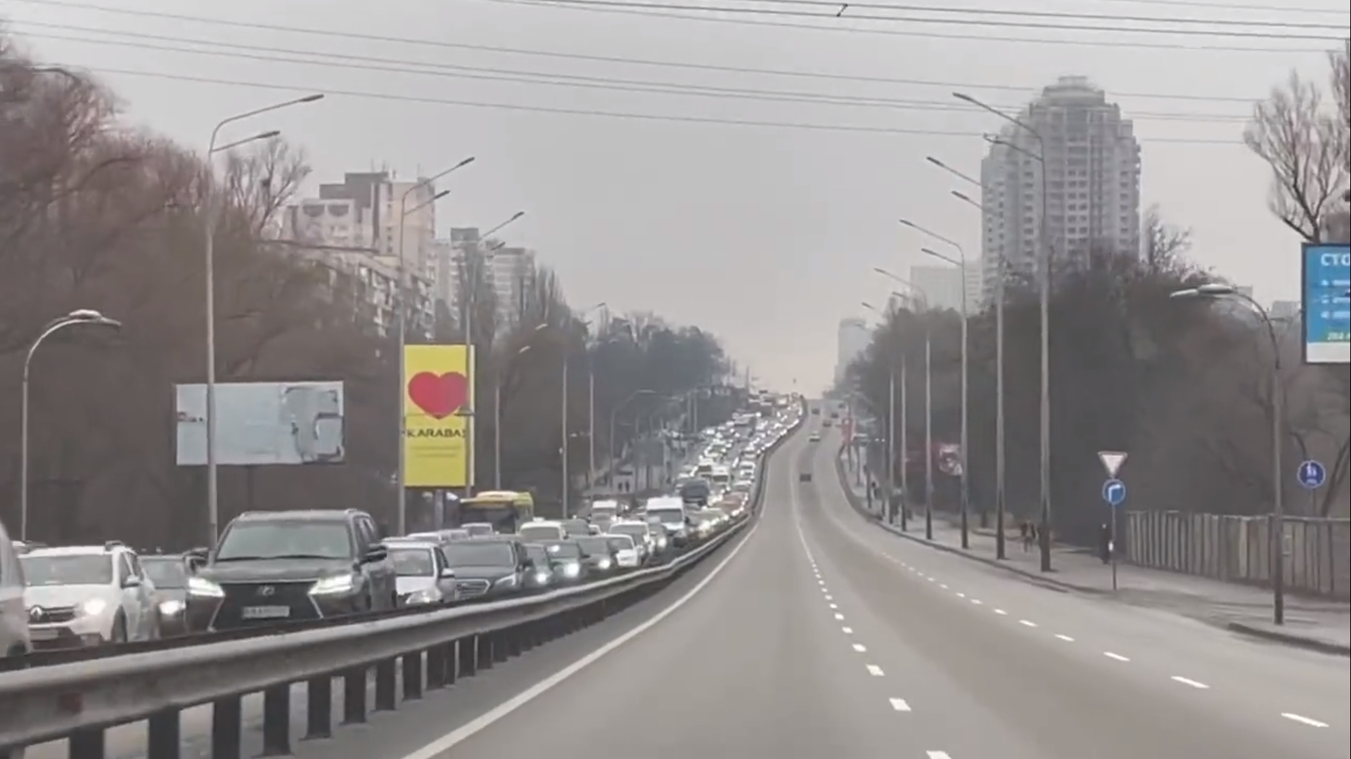 海外社交媒体用户发布的现场视频同样显示,基辅进城方向几乎没有车辆,而出城方向堵得水泄不通,车辆行驶速度非常慢。