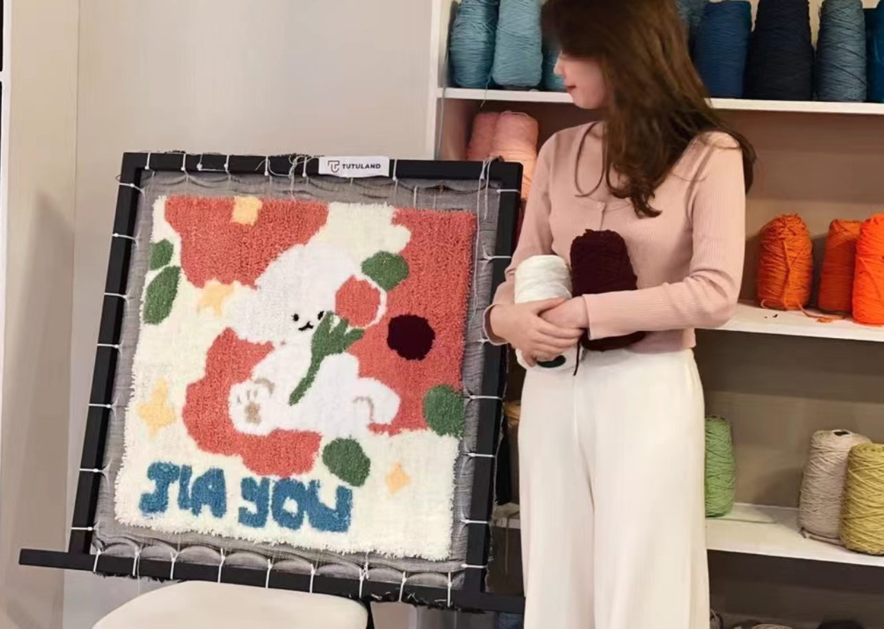 广东的第一家tufting门店开在汕头。在周周看来,和一线城市相比,二三线城市周末休闲活动相对没有那么丰富,给了手工工坊诞生的空间,但随着tufting的热度攀升,让她觉得在广州也能开启创业。在经过几个月的筹划后,周周的店今年年初开出。
