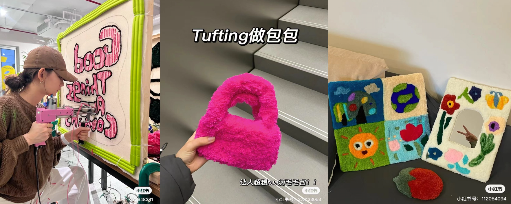 在寒冬里,女孩们似乎很难抗拒成品毛茸茸、让人心生暖意的手工活动,而更为重要的是,tufting切中了当下年轻人需要治愈的消费心理———疫情持续反复的两年多来,大家都太需要释压了。