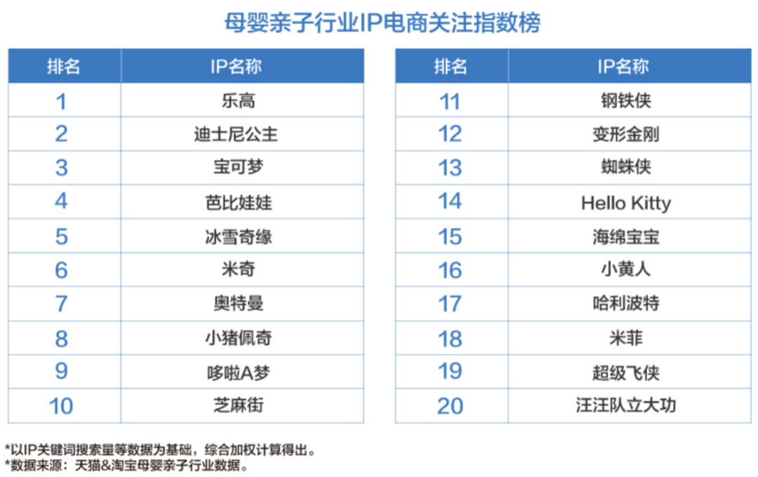 位居IP电商关注指数榜的第3位正印证了这一假设,以IP关键词搜索量等数据为基础综合加权的结果中,宝可梦仅次于跨年龄占领用户心智的乐高和经久不衰并一直在注入新内容新感觉的迪士尼公主系列。