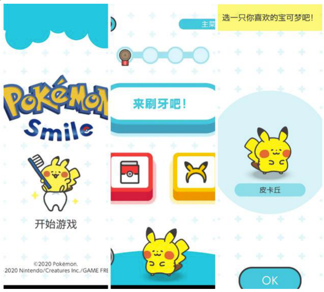 《Pokemon Smile》是任天堂基于AR技术开发的宝可梦幼龄教育游戏,旨在帮孩子养成爱刷牙的好习惯。游戏设定为宝可梦被蛀牙捉住了,只需打开摄像头,按照标准动作好好刷牙才能击败细菌、拯救宝可梦。家长还可以根据自家小朋友的不同成长阶段,设定1-3分钟不等的刷牙时间。此外,游戏还提供闹钟功能,每天三次发送通知,提醒小朋友们刷牙。