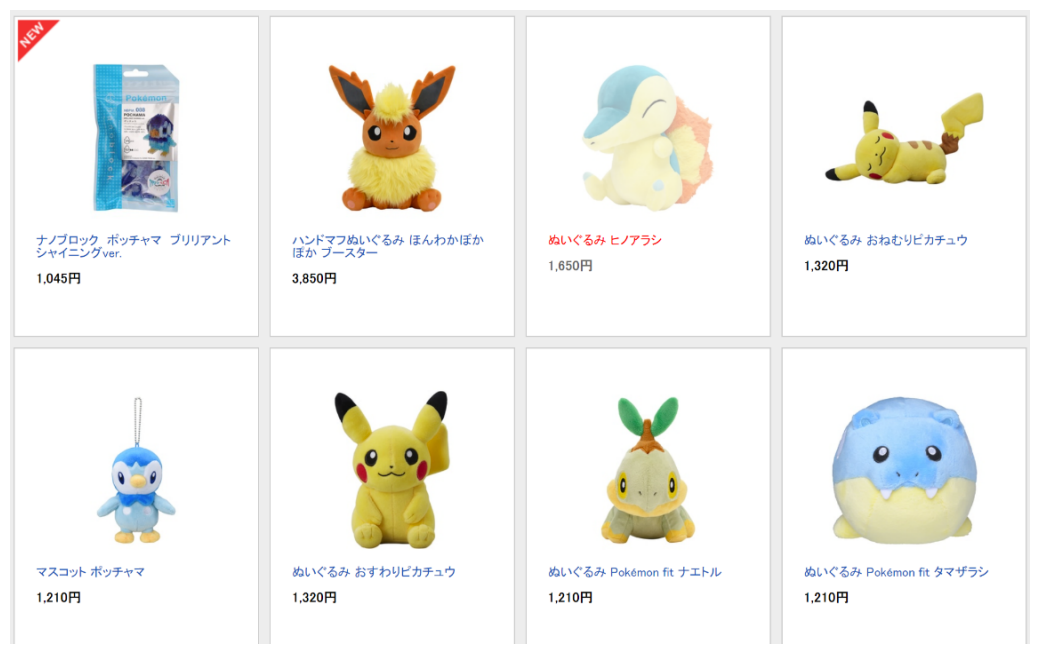 在毛绒玩具、手办模型等典型的玩具品类里,pokemoncenter-online能够检索到1674个商品,价格分布在500日元至上万日元不等,绝大部分在4000日元(约300元人民币)以下。
