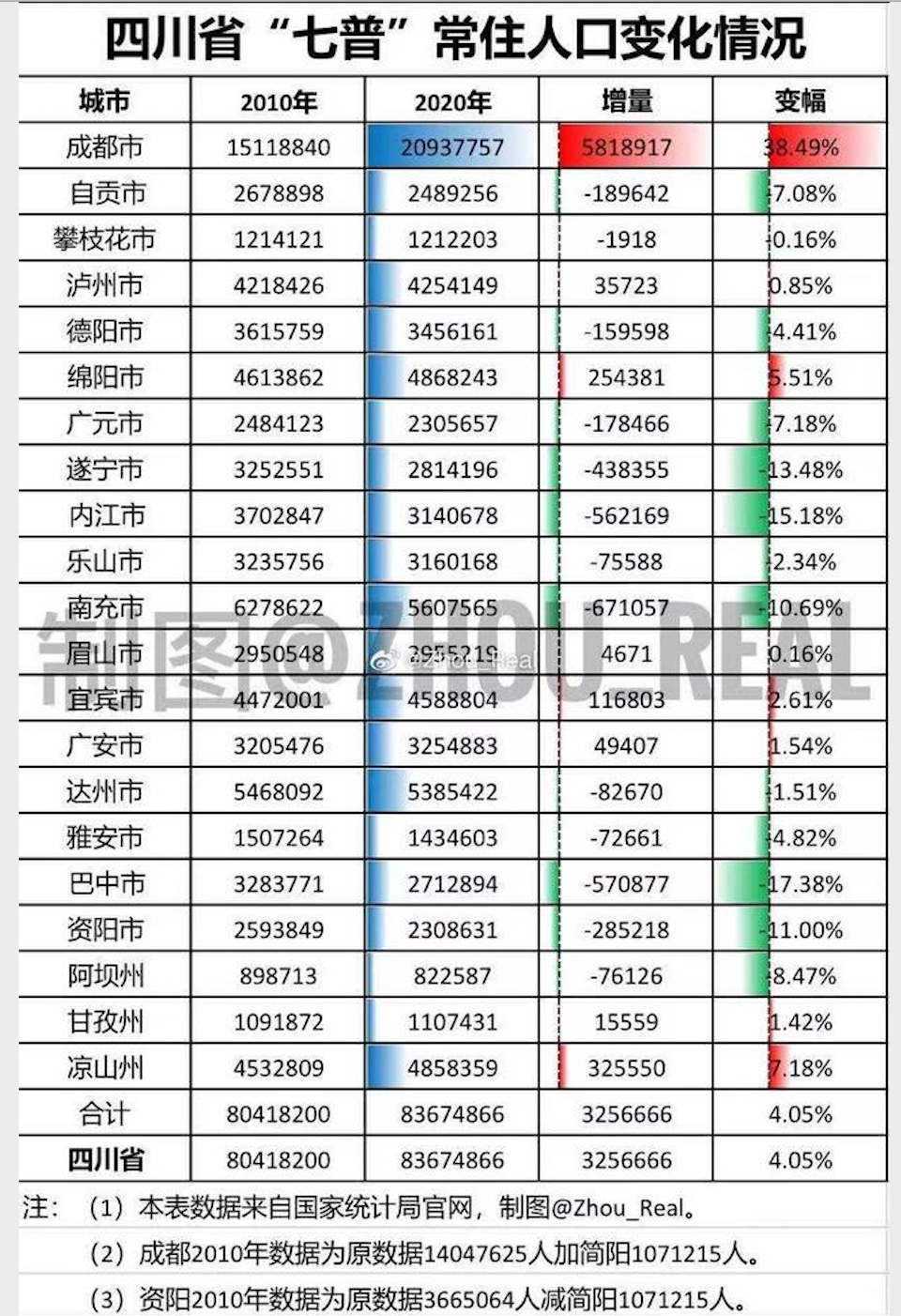 事实上,从“七普”数据就可以看出,过去十年,四川人口虽然增长了300多万,但每个地方的人口变化情况截然不同。