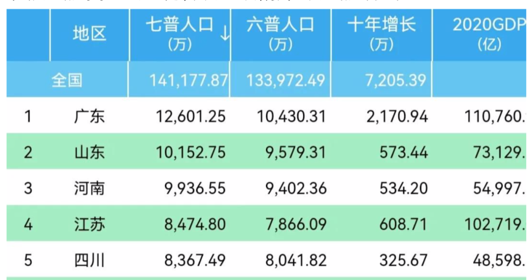 实际上,在第六次人口普查时,四川的常住人口为8041.82万,居全国第四位。而“七普”时,被江苏超过,降至第五位。