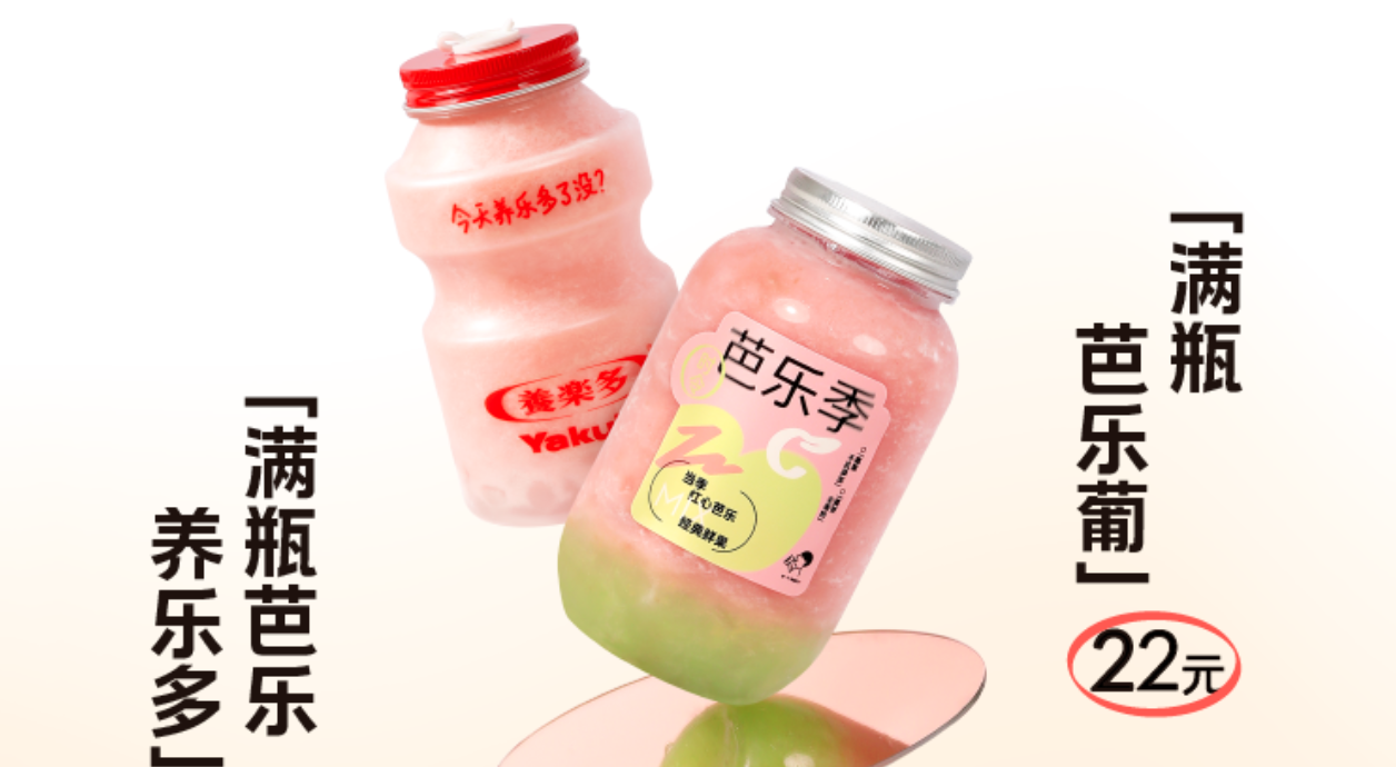 喜茶和奈雪的茶没有拿樱花、桃花作为灵感,但从新品选择的水果等元素来看,也是粉粉嫩嫩。前者推出了芭乐系列,用“笑带粉妆”、软糯红心的南方水果吸引注意;后者的新品围绕2种果香、2种花香(草莓、覆盆子和玫瑰香、茉莉香)开展,试图创造春日悸动的氛围。