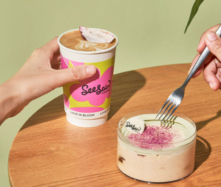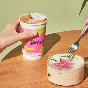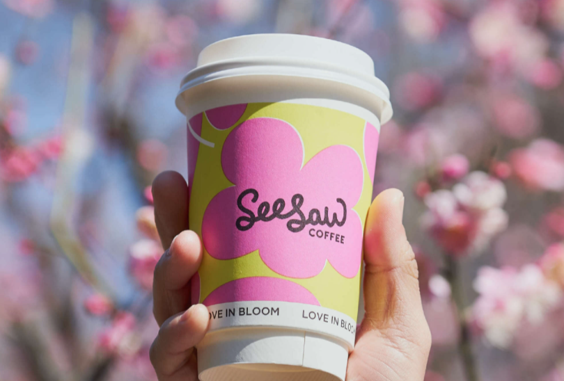 CoCo都可在2月4日立春推出了樱花和荔枝、椰果搭配的冰沙新品以及樱花粉荔拿铁,强调“春天第一杯”的卖点时,采用粉红的用色营造温馨的春日氛围。Seesaw则选择桃花来做文章,无论是杏桃花蜂蜜拿铁、轻云桃桃美式,还是花花玫瑰荔枝慕斯,都寄予着春天开运的彩头。