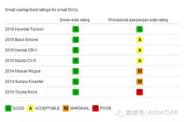 在以往的25%小重叠碰撞测试,这七款车都获得了GOOD(优秀)评级,但这一次的测试结果却令人咂舌。七款车当中只有途胜获得优秀评级,其它车均是良好或以下,丰田RAV4甚至拿了个POOR(不及格)评级。