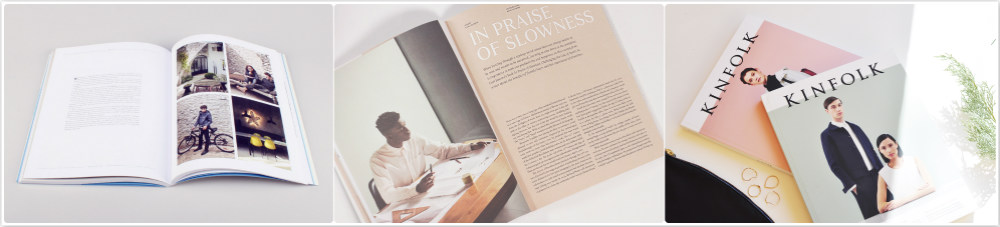 Kinfolk季刊算是当今最有名气的生活杂志之一了。2011年,它创立于美国波特兰一所带有漂亮摩门教教堂的大学内,创始人Nathan Williams和她的女友 Katie Searle,以及朋友Bischoff兄妹开了一个分享晚餐和聚会照片的博客,短短两周内,点击量就达到了200万。然后他们找到旧金山的一家出版商合作,先印了个500本实体杂志,结果又一下子卖光。