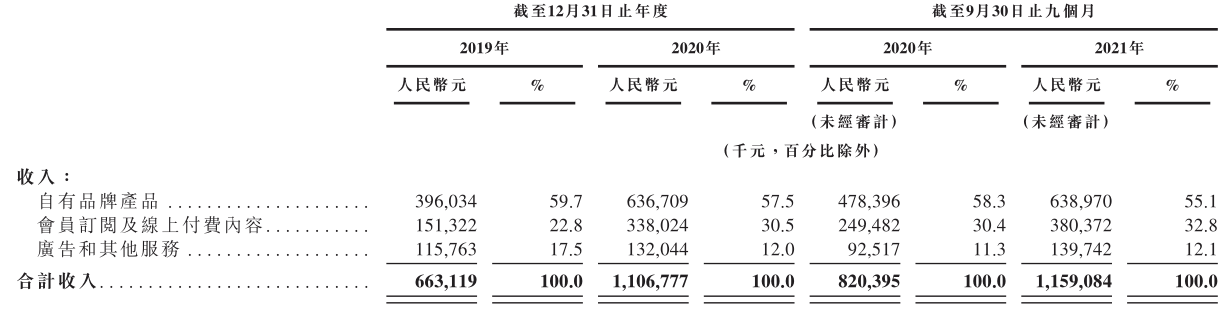 根据招股书披露,Keep最近几年营收高速增长,从2019年的6.63亿元增至2020年的11.07亿元,2021年前三季度进一步增至11.59亿元,超过2020年全年收入。
