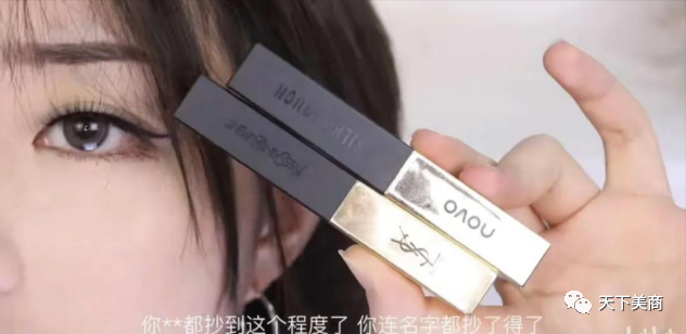 如图所示,novo的产品外观与被抄产品外观的相似度,真可以说是“异父异母的亲兄弟”。novo涉及抄袭的品牌,更是多得离谱,从ysl、海蓝之谜,到romand、完美日记。可以说是把能抄的都抄了,能蹭的都没落下。凭借“国货平价”的头号,受到消费者的青睐。