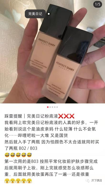 再比如完美日记的彩妆备受喜爱,但是底妆产品就进入了消费者的雷区。