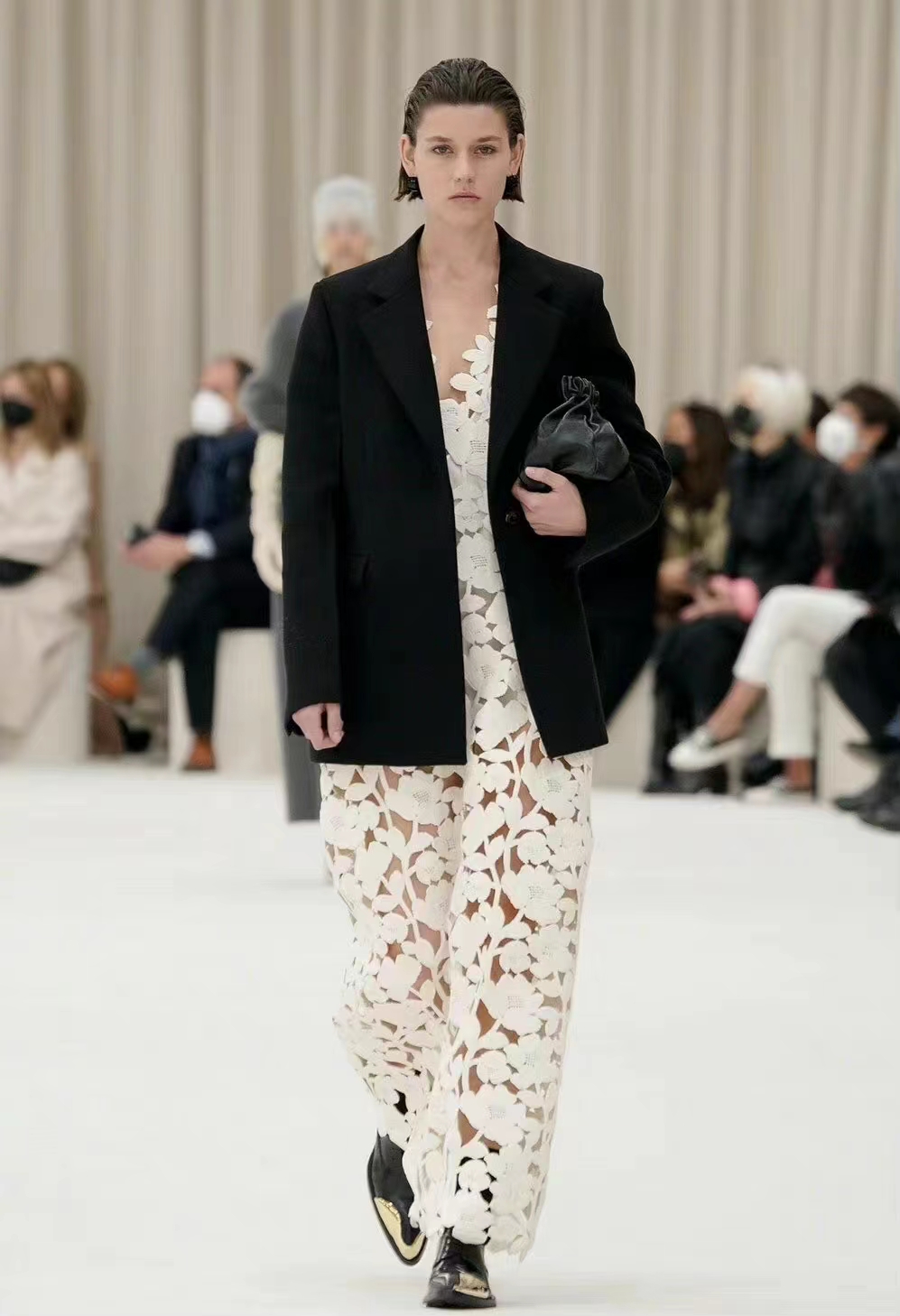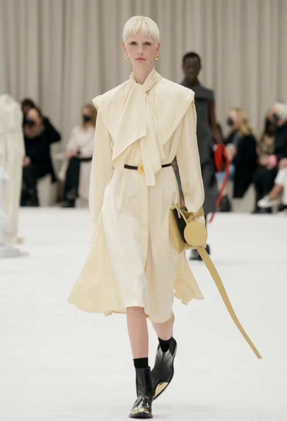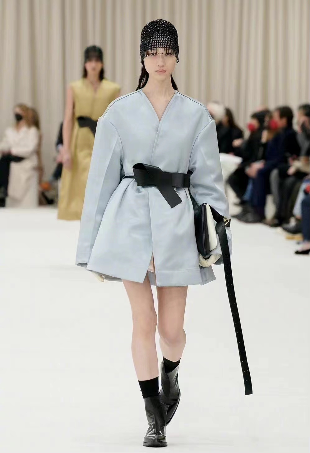 整体而言,JIL SANDER 2022/2023秋冬女装系列色调柔和且不尽相同,黄油色、奶油色、淡蓝色、浅绿色、粉色、淡紫色等都与经典剪裁相得益彰。