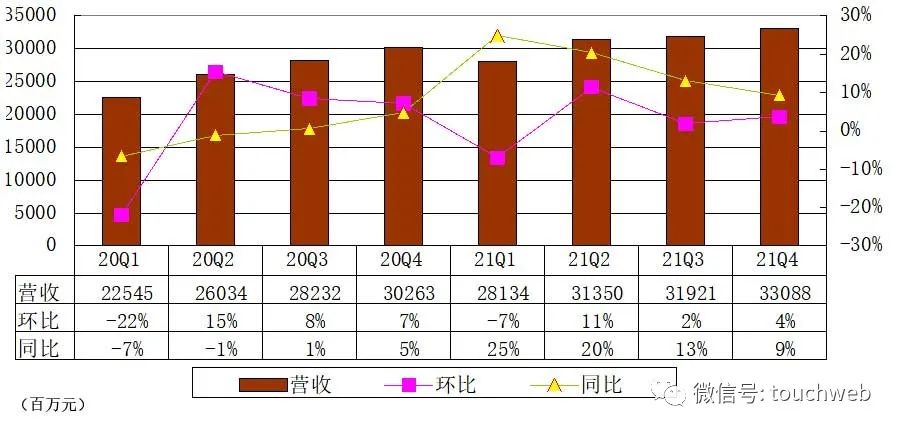 百度2021年第四季度营收331亿元,较上年同期的302.63亿元增长9%。