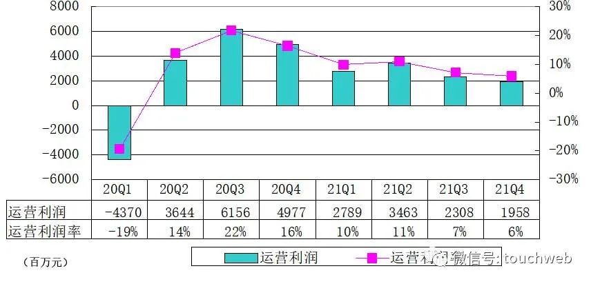 百度2021年第四季度运营利润为20亿元,Non-GAAP运营利润为43亿元,百度核心Non-GAAP运营利润48亿元。