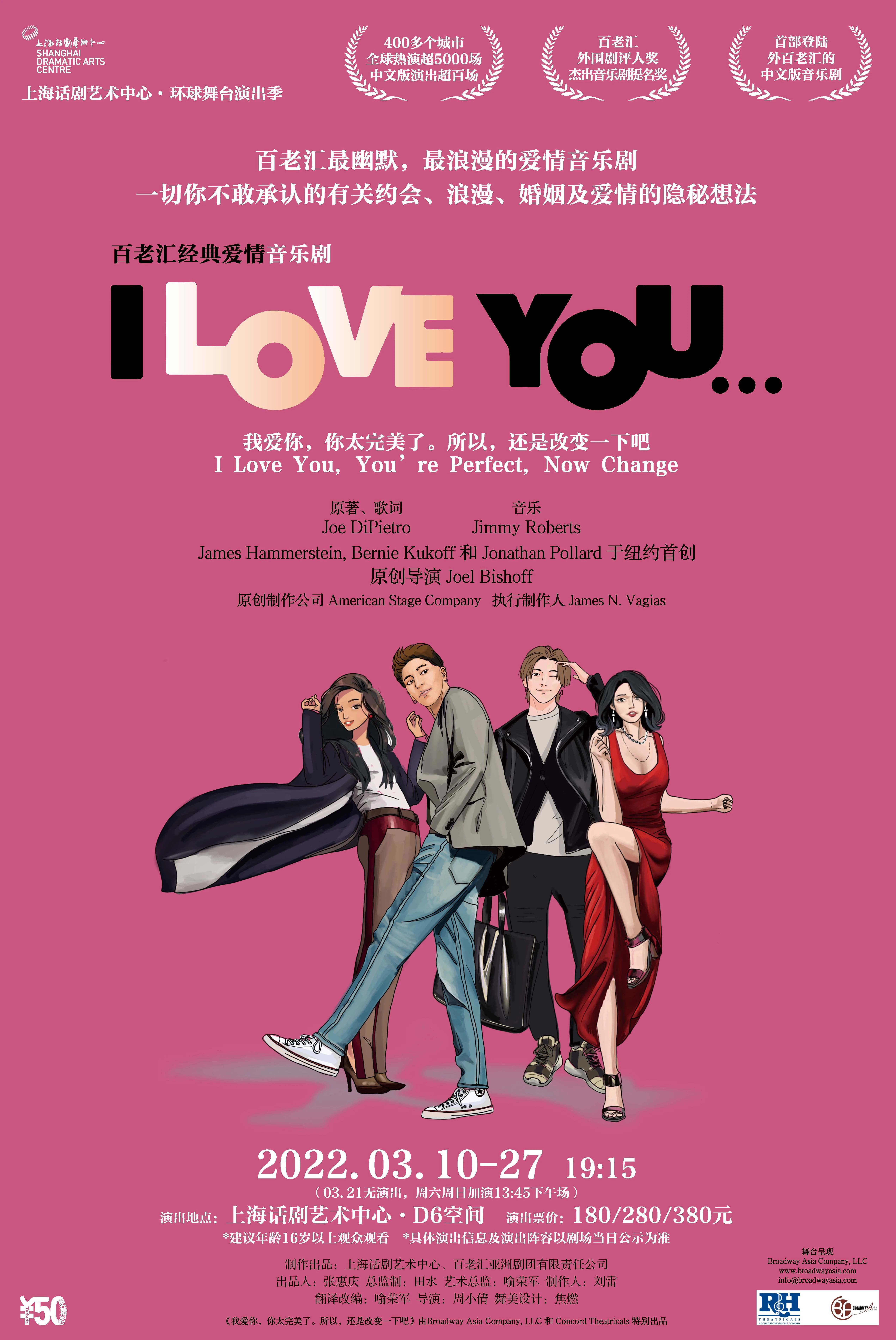 2006年,上海话剧艺术中心首次制作演出了中文版《I LOVE YOU…》,由林依轮、于毅、温阳、马青利主演,这是中国第一部中文版外百老汇音乐剧和第一部登陆外百老汇的中文版音乐剧。此次复排版的一大看点是舞台设计。话剧艺术中心六楼的小剧场将被改造成一个五彩斑斓的沉浸式混搭空间,一部分观众席将被整体移动到舞台另一边,舞台设置在中间,因此不同观众席位的观众将会有不同的观剧体验。