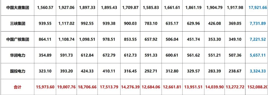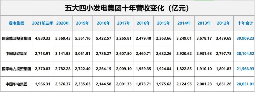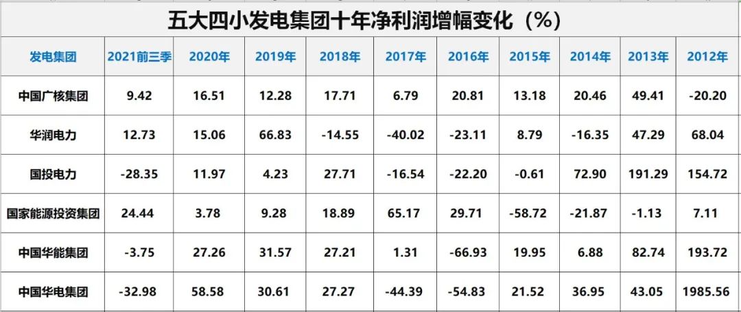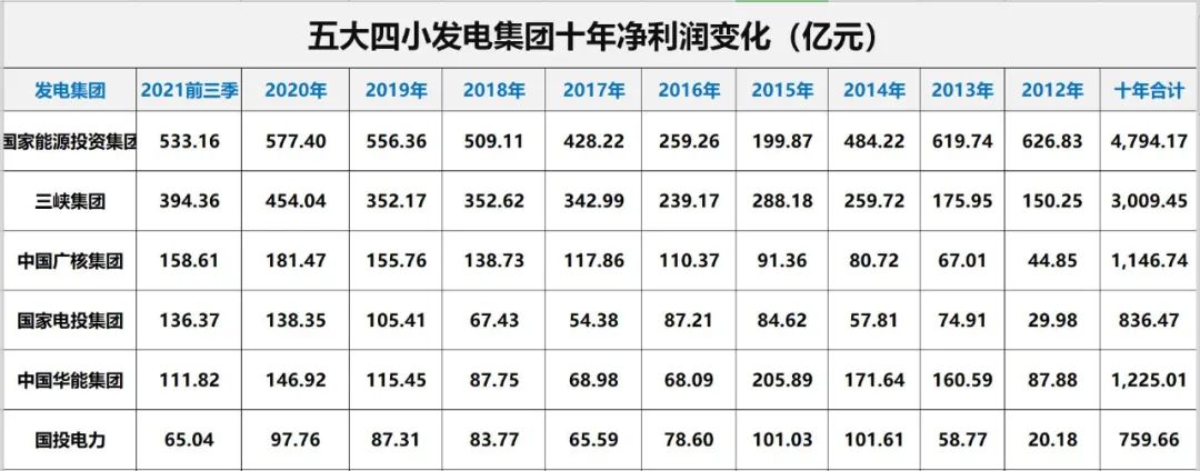 2.十年创造净利润1.40万亿,其中4家发电集团创利超1000亿元。