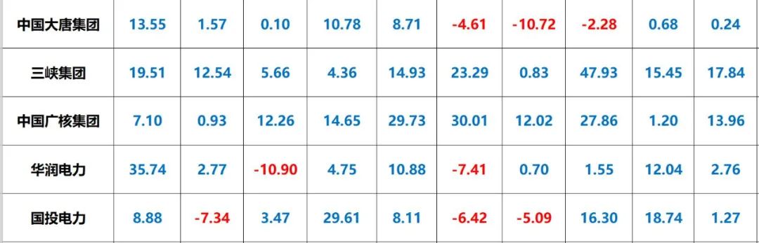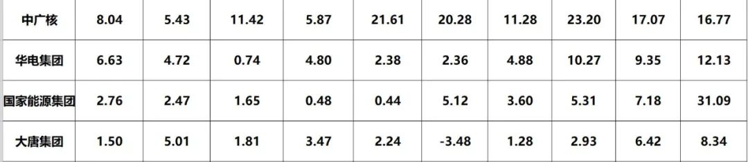 近十年间,五大四小发电集团合计创造净利润1.40万亿,其中4家发电集团创利超1000亿元,依次为国家能源投资集团,合计创利4794亿元;三峡集团,合计创利3009亿元;中国华能集团,合计创利1225亿元;中国广核集团,合计创利1147亿元。其中,中国广核集团是持续盈利最长,其净利润已连续9年实现正增长,其次是国家能源投资集团,持续6年净利润保持正增长。