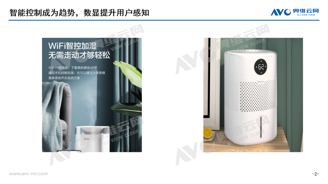 在智能化方面,为提高产品体验,大部分TOP品牌都为自家产品添加了智能恒湿、智能数显功能和智能遥控等功能,可以充分结合自家套系化、场景化的其他产品。在提升使用体验的同时,通过高频交互在消费者心理植入自家品牌的心智,养成使用习惯,充分扩大自身品牌的优势,试想一下,谁能拒绝肉眼可见的湿度提升和“奥维菌,帮我打开加湿器” 呢。奥维云网(AVC)线上监测数据显示,2022年1月加湿器智能数显销额占比40%,同比增长7.9%,2022年1月加湿器智能遥控销额占比29.6%,同比增长5.8%,智能化相关功能的迅速增长也从数据层面证明了这点。