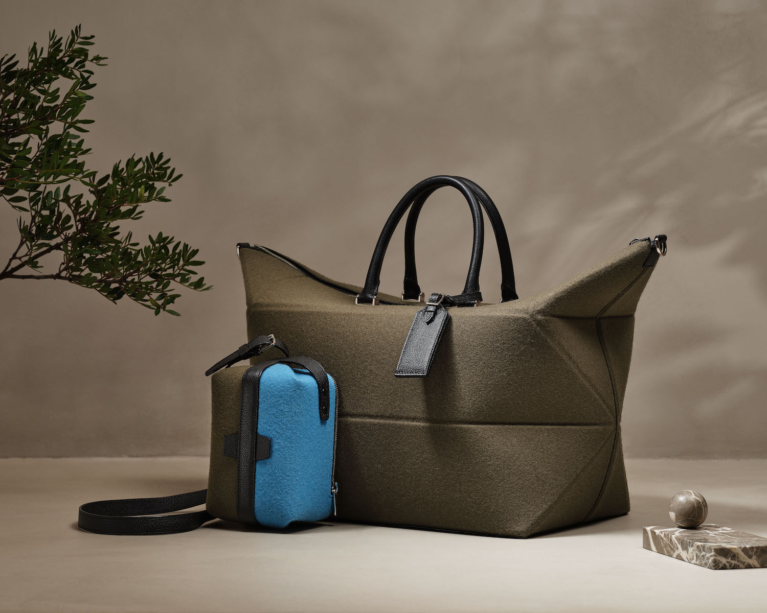 Valextra不断探索以匠心设计灵活满足日常需求,将细腻柔和的羊毛毡材质巧妙融入品牌经典作品中。新款Tric Trac手腕包的包身采用军绿色与海蓝色以及赭石色与灰色的配色组合,分别搭配标志性的Valextra黑色和哈瓦那棕色皮革饰边。Soft Tote手袋则散发出简洁的艺术美感。