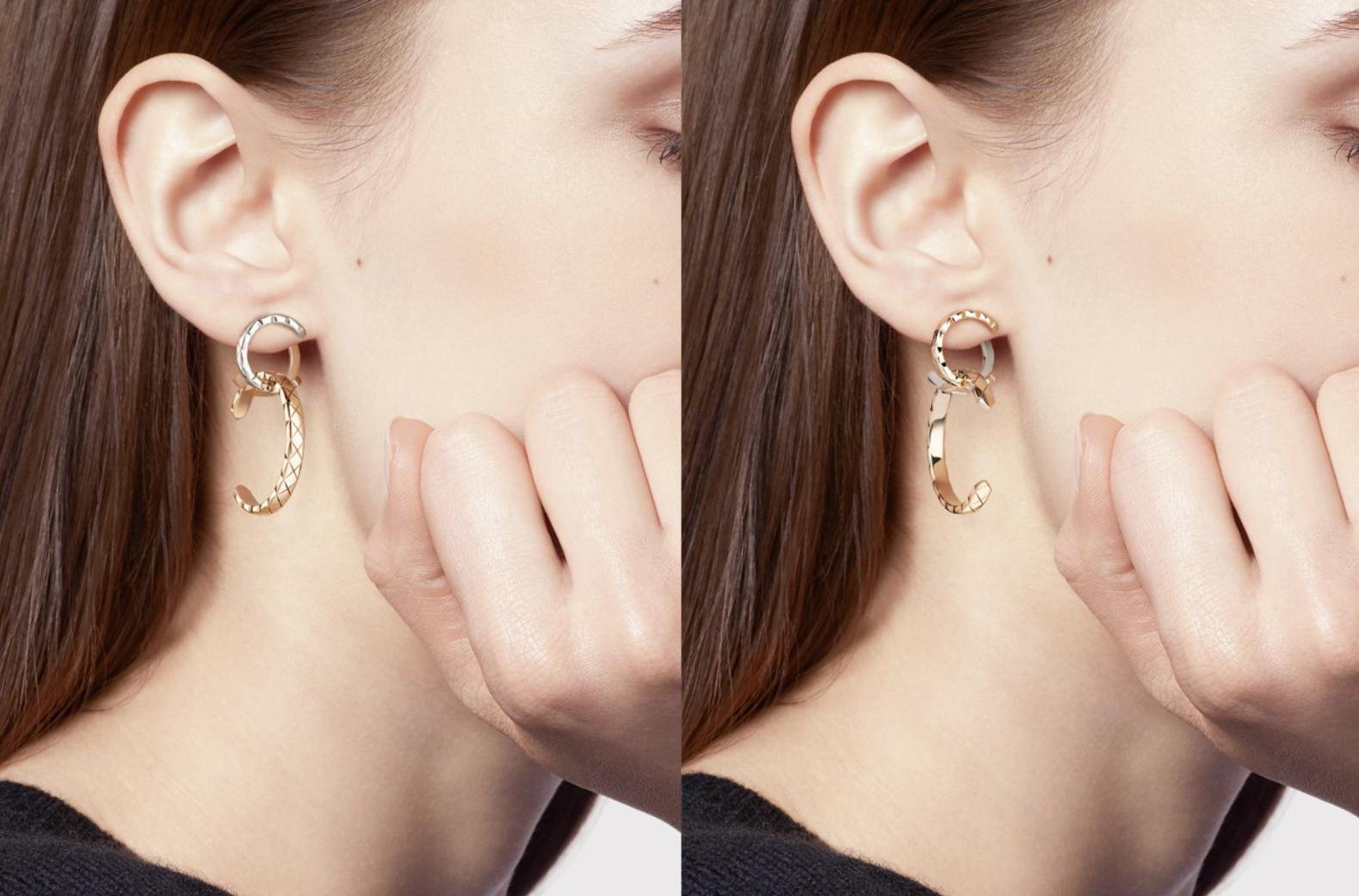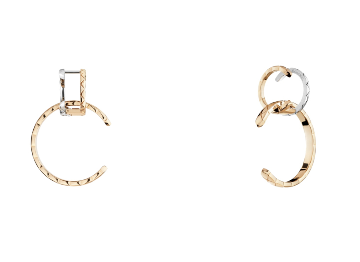 前不久由BlackPink成员Jennie出演并代言的Chanel CoCo Crash高级珠宝广告大片,让一众带有香奈儿经典元素菱格纹的戒指、C字项链、耳环等全面曝光,展现出层出不穷的时尚感。而本次的COCO CRUSH圈形挂饰耳环可谓是该系列中的小众隐藏款式,无处不在的优雅感和梦幻感,都显现出它的独特出众。