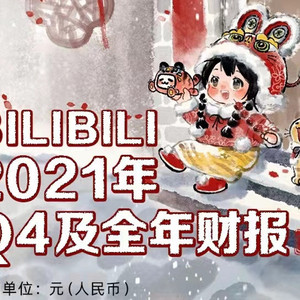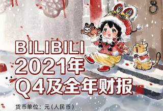 B站董事长兼首席执行官陈睿表示:“在过去三年里,B站实现了相当可观的增长,其中用户规模增长了超一倍,收入规模增长了近两倍。2021第四季度,B站月活用户同比增长35%达2.72亿,社区持续保持着高活跃和高黏性的特点,日均用户使用时长达82 分钟。迈入全新的2022年,实现健康、高质量的增长依然是我们的首要任务。在‘视频化’的浪潮下,我们将继续构建多品类、多场景的内容生态,来满足用户日益多元的内容消费需求,并为用户提供对日常生活有用、有价值的视频内容。我们始终相信,增长是手段而非目的。在扩大用户基础、提升商业化能力同时,我们也将关注改善经营效率,收窄亏损,并长期致力于探索对社区有价值、对社会有正向意义的事情。 ”