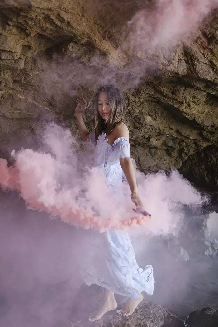 Aimee Song 穿这条仙女裙玩起了彩烟。(时尚圈都在玩,你还没玩吗)