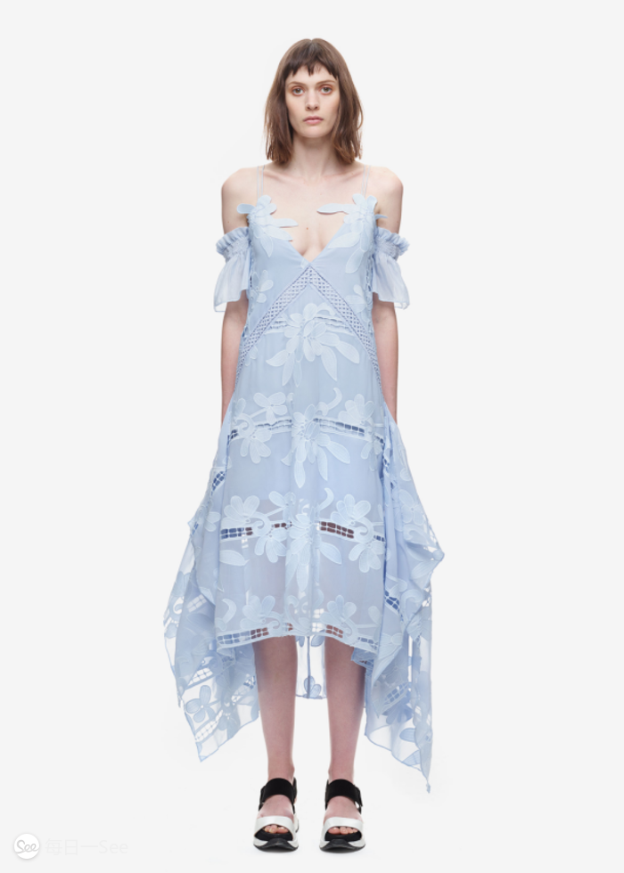 一提仙女裙,肯定第一个想到Self portrait,裙子最大的特点就是蕾丝,满满的蕾丝。蕾丝加上镂空元素的设计,性感跟仙气的结合恰到好处。