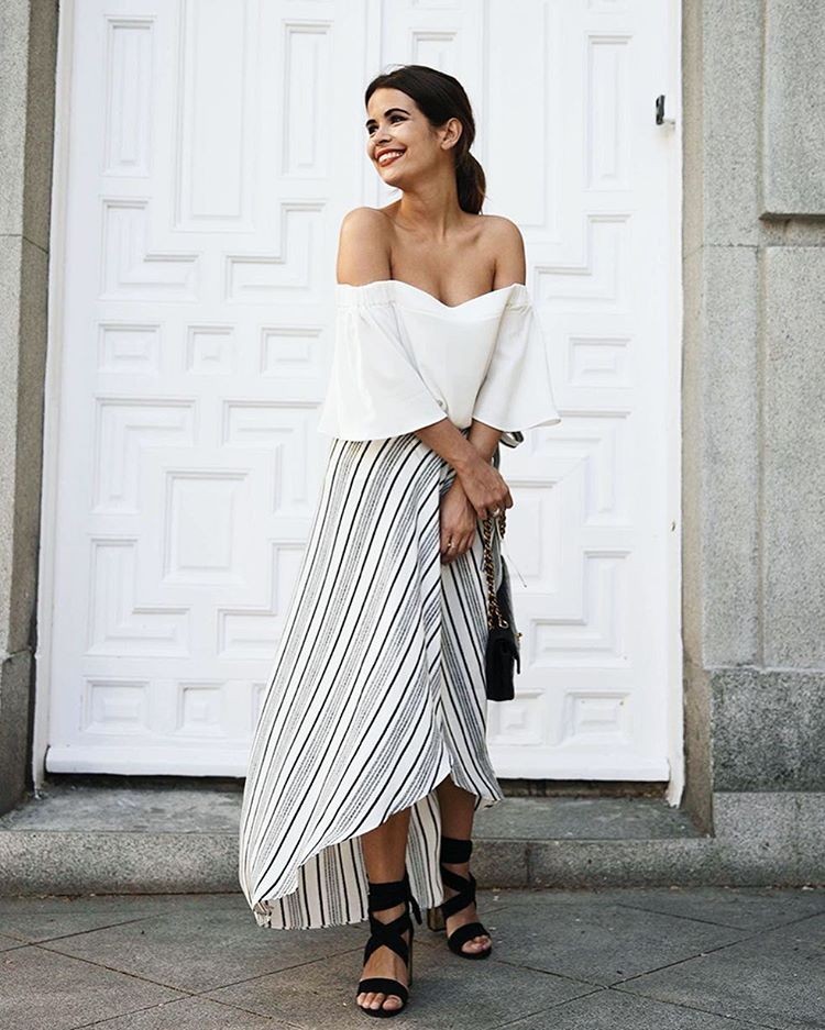 除了连衣裙,半身裙也是可以很仙的哦。竖条纹的半身长裙既显瘦又飘逸!