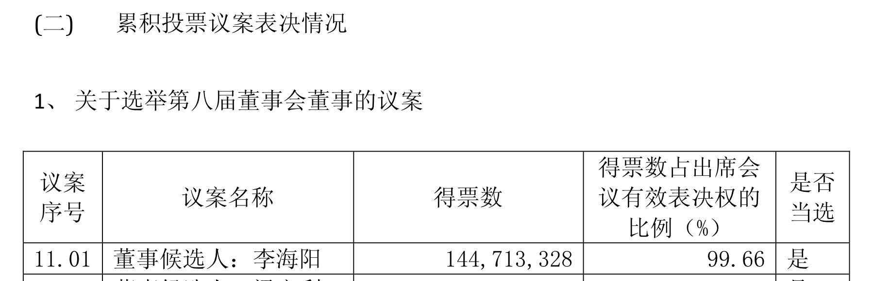 “一般来说,非累积投票制,要么全赢要么全输,而采用累积投票制,小股东可以押注一个或几个候选人,将提名候选人送进董事会”,对此,有投资者对界面新闻分析道。