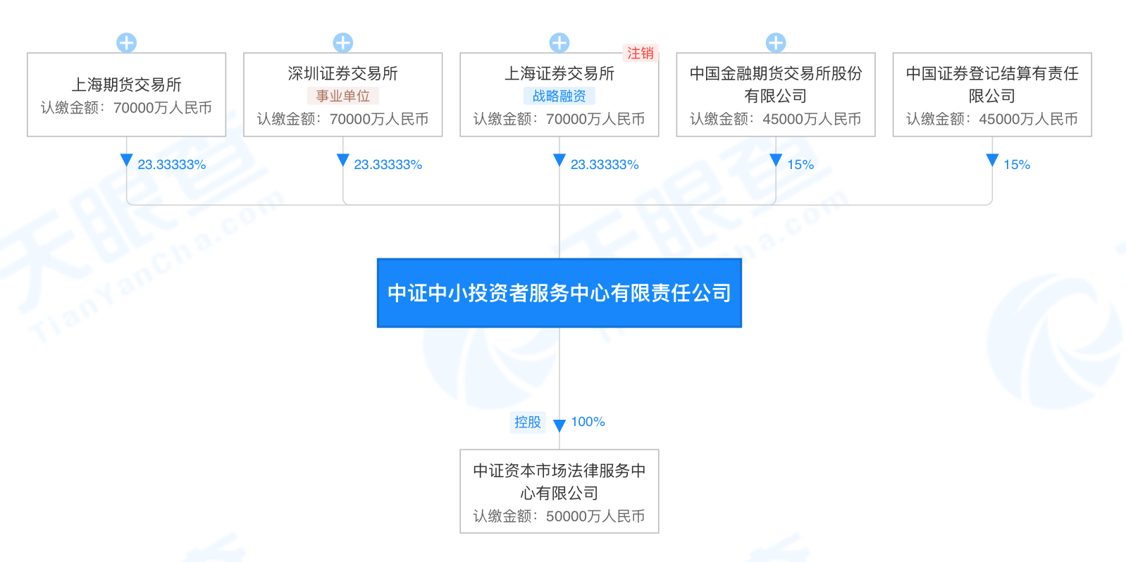 其次,上述《关于将关联交易提交股东大会审议的议案》是投服中心一起参与提议的。天眼查显示,投服中心由上海期货交易所持股23.33%,深交所持股23.33%,上交所持股23.33%,中国金融期货交易所股份有限公司持股15%,中登公司持股15%。