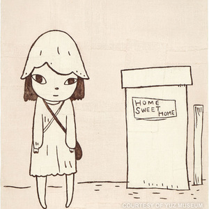 1988年,28岁的奈良美智前往德国杜塞尔多夫艺术学院学习,他在德国探索出了细腻敏感的画风,也遇到了后来被他称为恩师的画家彭克,彭克以对战后德国状况的反思而闻名,同时影响着奈良美智的还有整个德国社会对二战的反省。“9·11”事件后,美国以“打击恐怖主义”的名义发动阿富汗战争,奈良美智受到日本摄影师川内伦子的邀请,两人共赴阿富汗战场。奈良美智认为,“身处遥远又安全的国度,说着反对战争似乎是没有什么说服力呢。也许什么都做不了,还是走吧!”他以摄影与绘画的形式记录了阿富汗人们的生活日常,这趟旅程也让他开始关注全球政治与殖民史等话题。