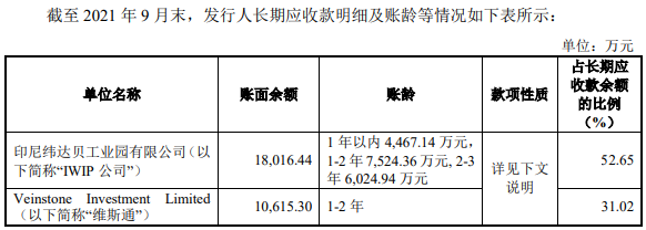 华友钴业与青山控股关系密切,公司约80%的长期应收账款可能与青山控股有关。截至2021年9月末,公司来自印尼纬达贝工业园有限公司(下称IWIP 公司)、Veinstone Investment Limited (下称“维斯通”)的合计应收账款占长期应收款金额的83%。