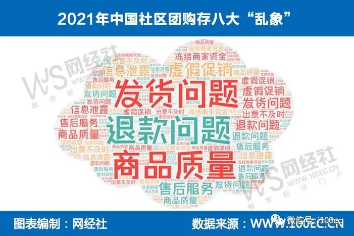 据网经社“电诉宝”(315.100EC.CN)数据表明,2021年社区团购被投诉问题主要聚焦在:退款问题、发货问题、商品质量、虚假促销、售后服务、信息泄露、冻结商家资金、出票不及时等问题。涉及投诉较多的社区团购平台有:兴盛优选、十荟团、每日一淘等。