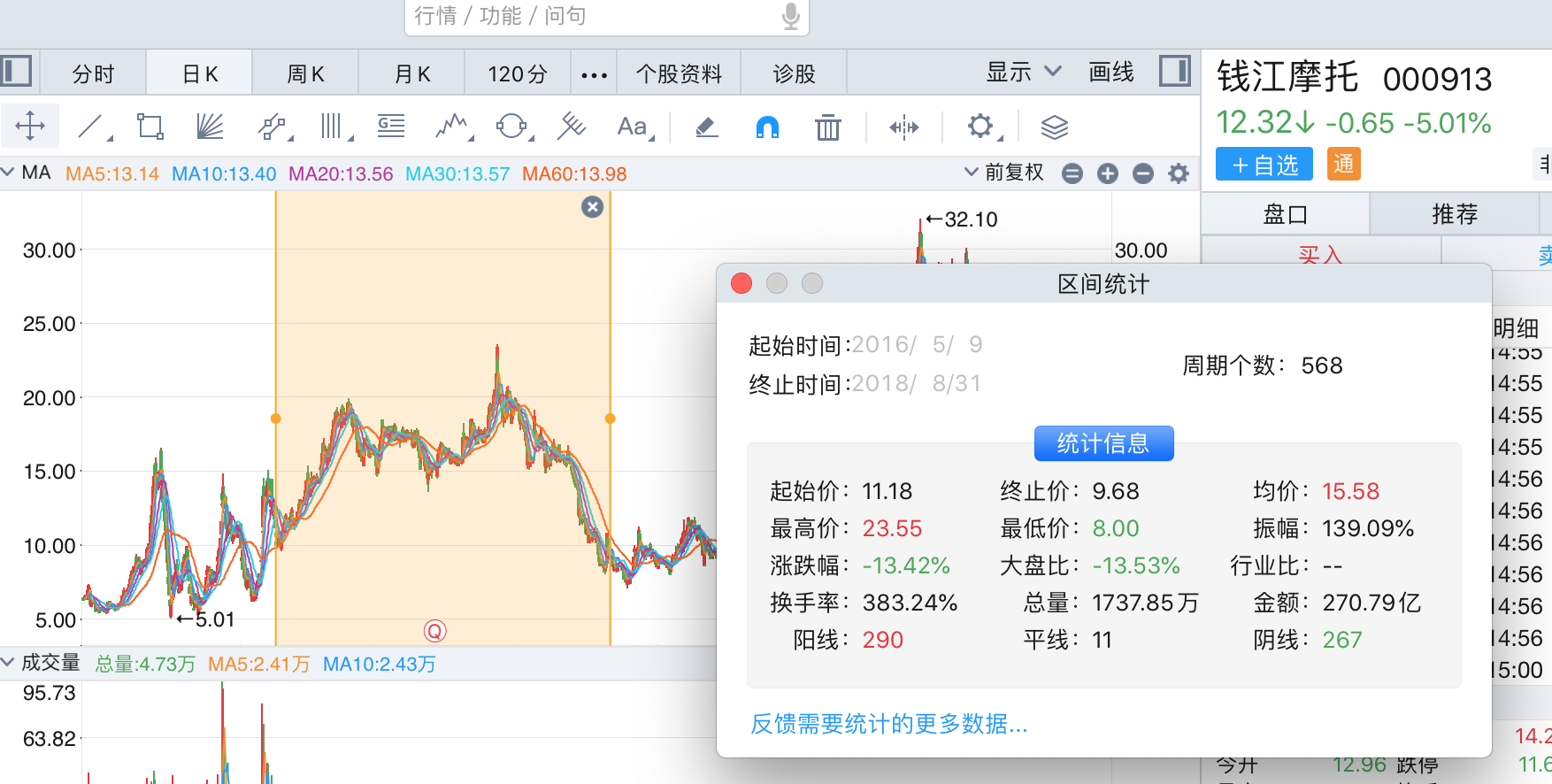 从盘面来看,2016年5月9日至2018年8月31日期间,钱江摩托的股价经历了一番涨跌,区间振幅接近140%。
