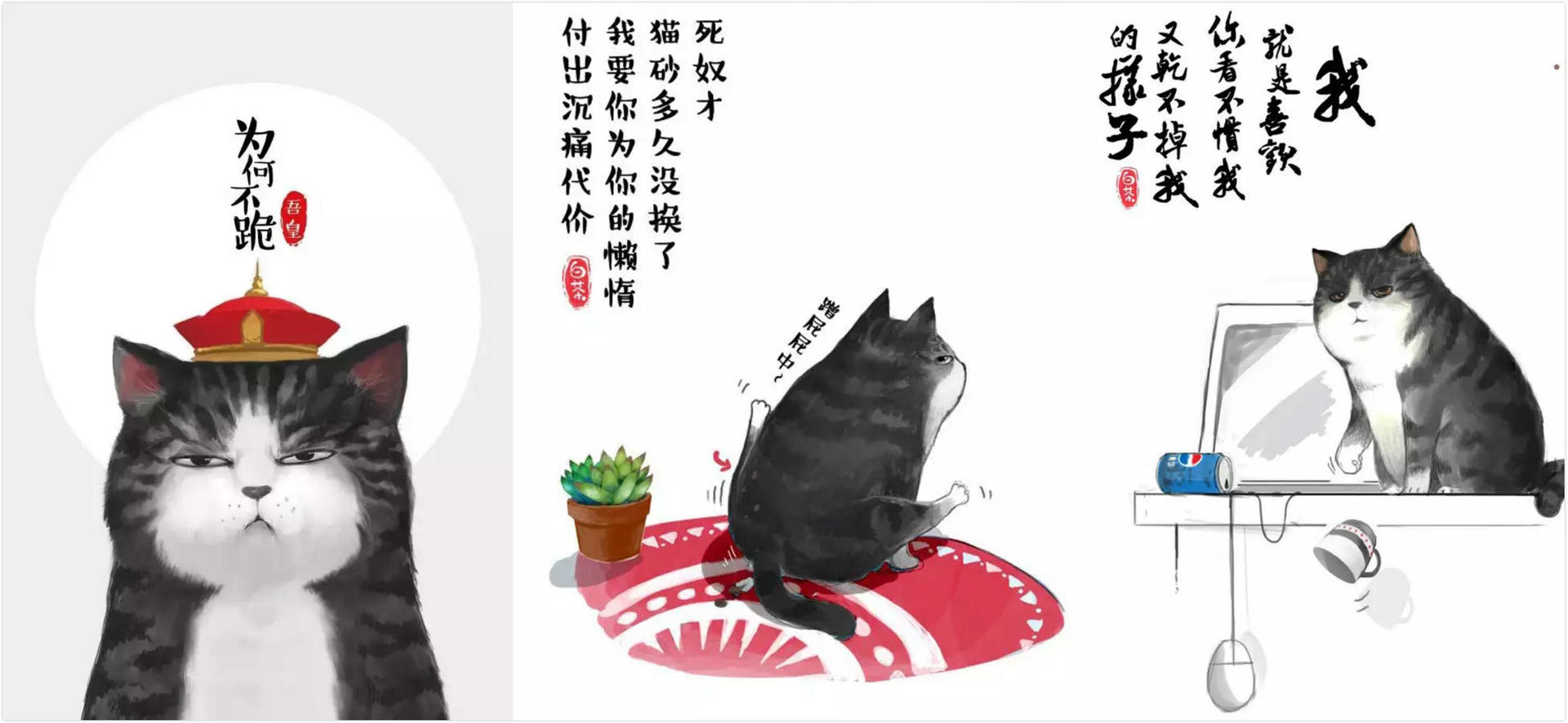 (插画师白茶笔下“吾皇”与“巴扎黑”的趣味小故事一度红爆微博微信)