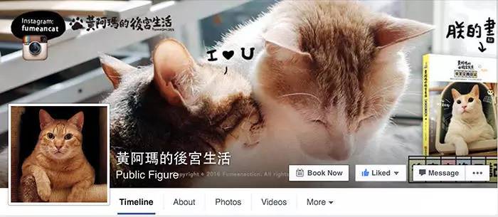 Facebook上有一个叫做“黄阿玛的后宫生活”的账号,发布内容围绕七只被主页君收养的流浪猫的日常生活,头一只被捡回来的猫名叫“阿玛”,之后捡回来的猫咪纷纷编入“阿玛的后宫”,“阿玛”的收养人和粉丝们则自称为“奴才”与“子民”。这个2013才创办的FB主页现在已经拥有七十多万粉丝,出版了众多书籍与周边,还上过《康熙来了》,去年因为自制视频《后宫剪指甲难易度大公开》在内地微博上红极一时。