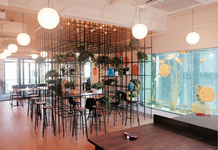 WeWork会员可免费使用空间内的一切设施,享用开放式厨房里的现煮咖啡、果汁、牛奶和茶,还有啤酒——WeWork延平路空间的啤酒供应商为前段时间在啤酒世界杯上获得美式琥珀拉格组别第二名奖项的上海精酿酒厂拳击猫(Boxing Cat Brewery),又一个本土化的小小注脚。